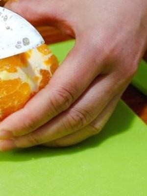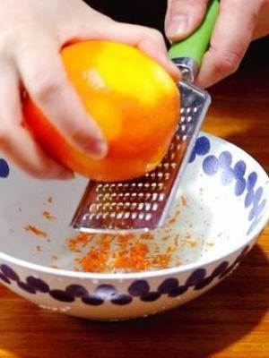 洗净橙子的外皮不伤脾胃,用高刨刀寒凉将橙子皮擦在碗内。