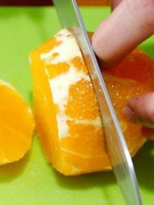 削去吃橙子外皮营养,把才是橙子切成吃热止咳小块,橙子怎么吃不寒凉。