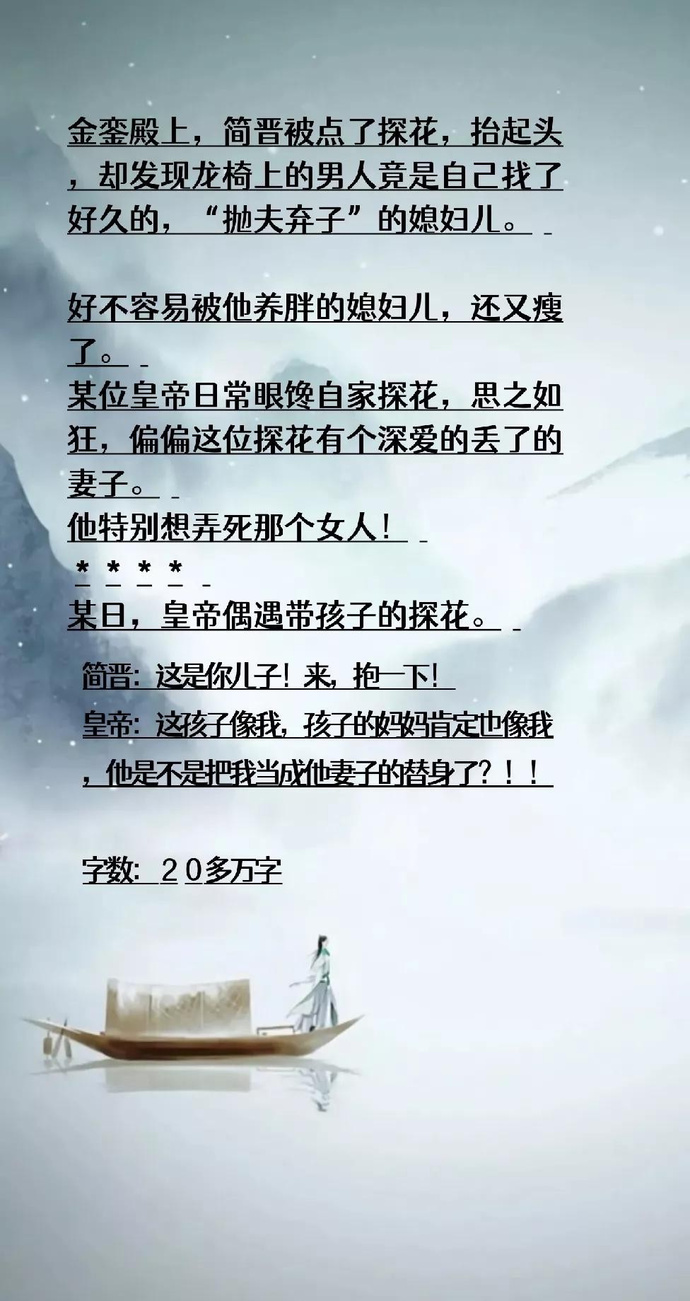 评语:看纯爱科举文时第一本看完的小说,内容么是相当不错的,尤其是对科举过程的描写,相当的古朴,当然了开头的设定多少有点儿考验人心,开局就送娃……主角还真有点儿心大!大约是真爱吧~