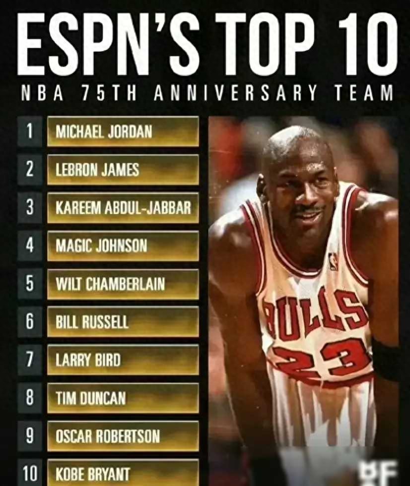 美媒ESPN近日更新了NBA历史前十的排行榜:詹皇稳坐次席!