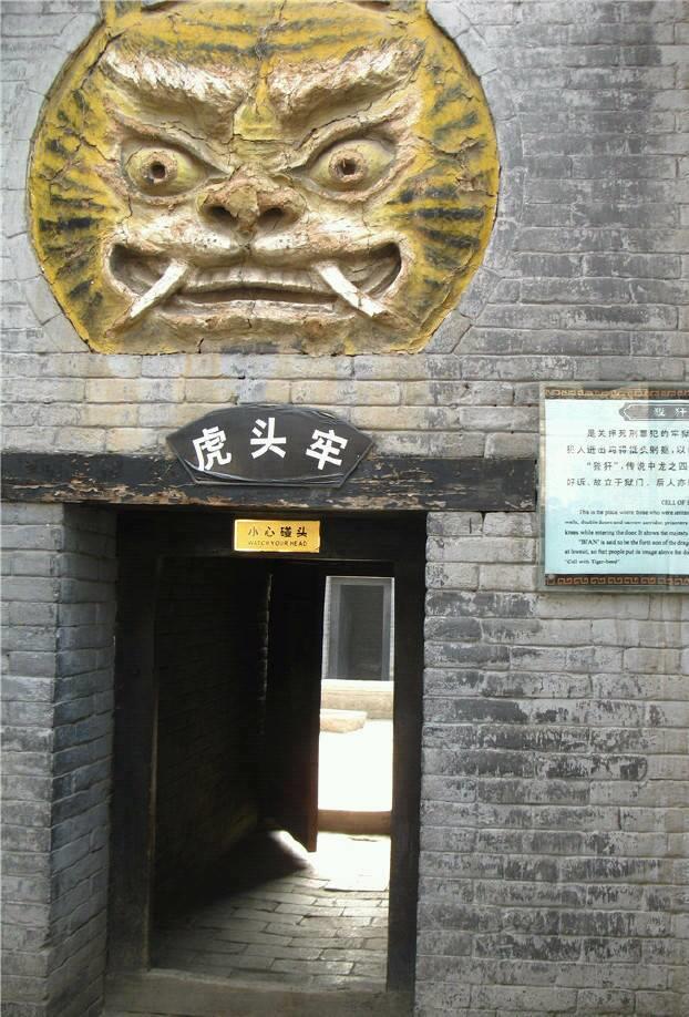 死囚牢房上头是狴犴头像,龙生九子之一,因像虎头,又被称为虎头牢,有:羊入虎口;有去无回之意