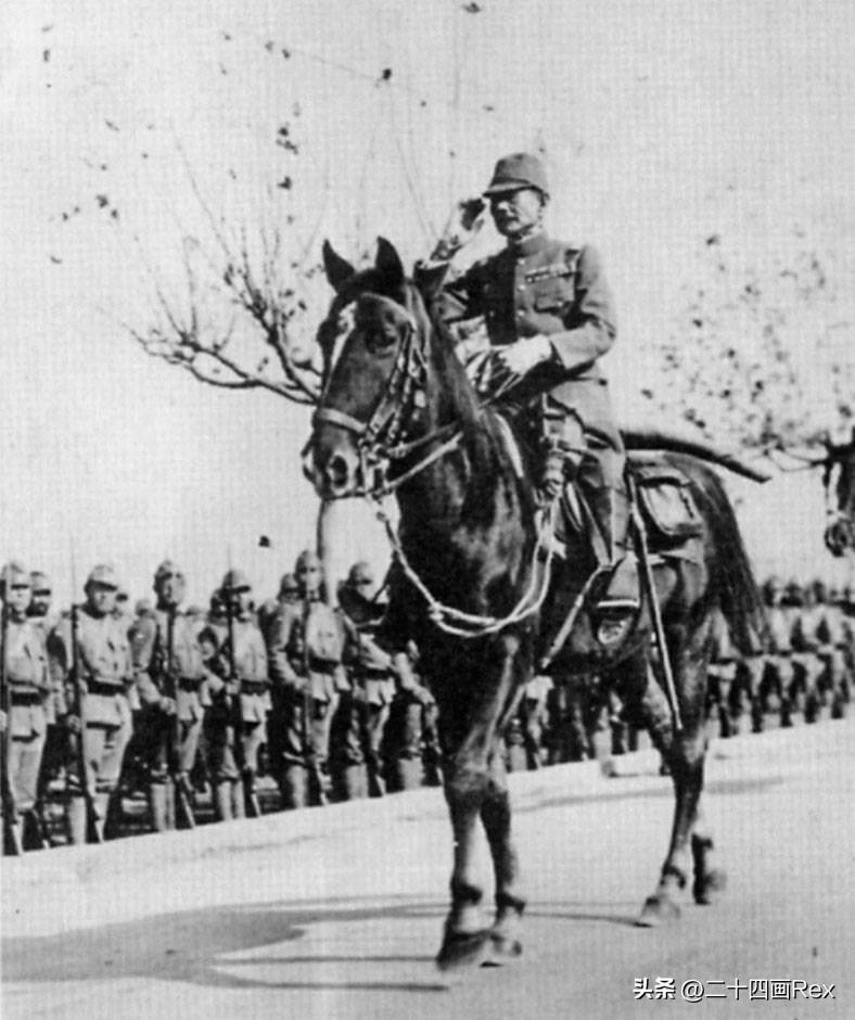 松井石根将军进入南京城后向获胜的日军敬礼。