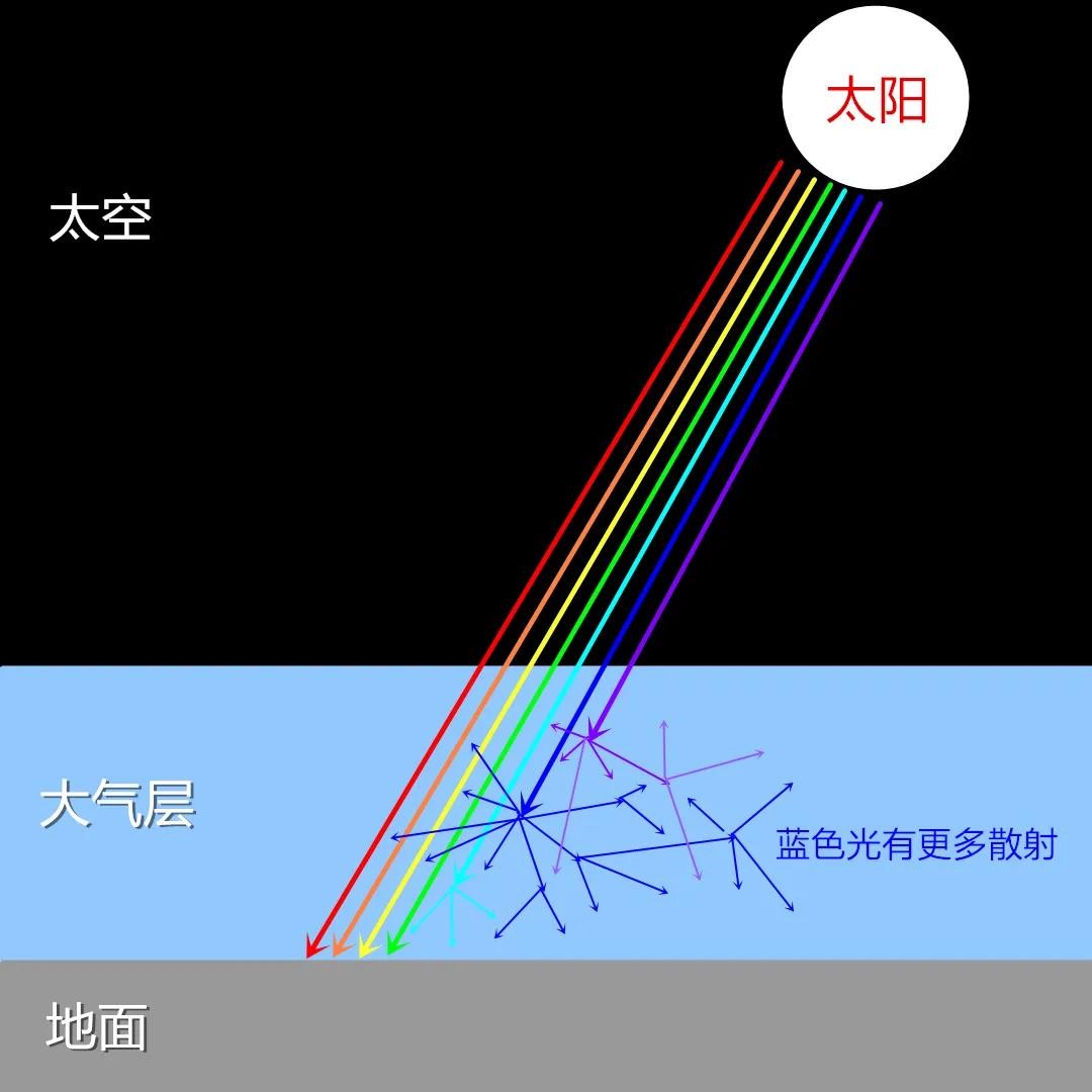 这种散射现象发生在所有方向上,使得我们能够从各个角度看到阳光。但是,不同颜色的光波在空气中的散射强度是不同的。由于光波的波长和频率不同,它们在空气分子中的散射程度也有所差异,这正是天空呈现不同颜色的根本原因。