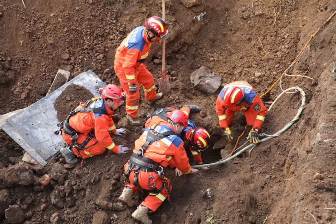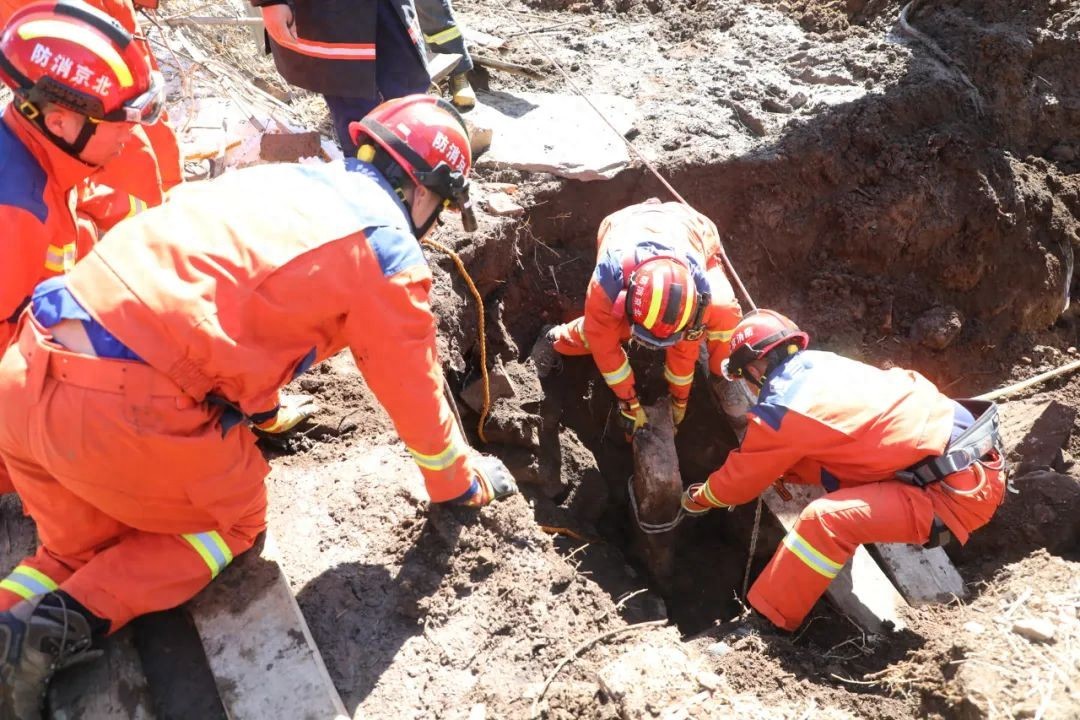 消防员立即展开救援。先利用移动供气源向井下输送氧气,接着将井口周围的碎石小心翼翼地转移到一侧,防止再一次的塌陷伤害到被困男子。随后,挖掘机在井口周围挖掘,扩大救援面。
