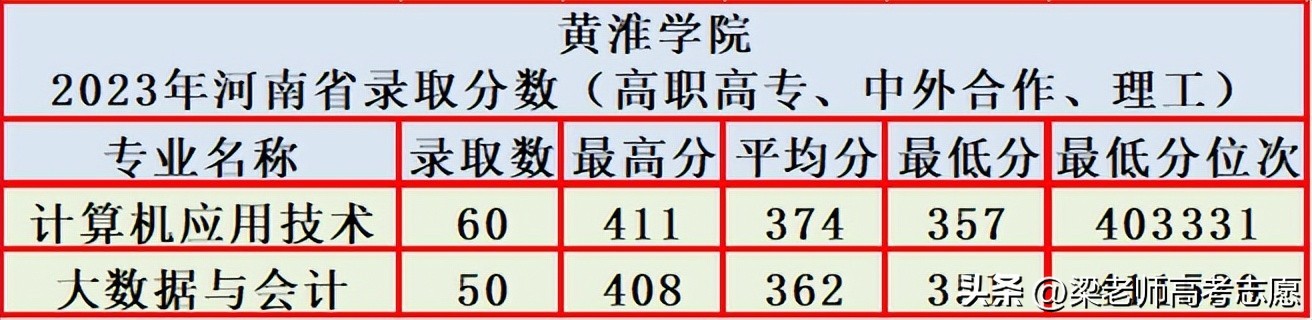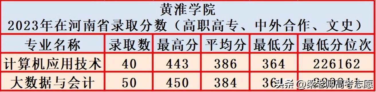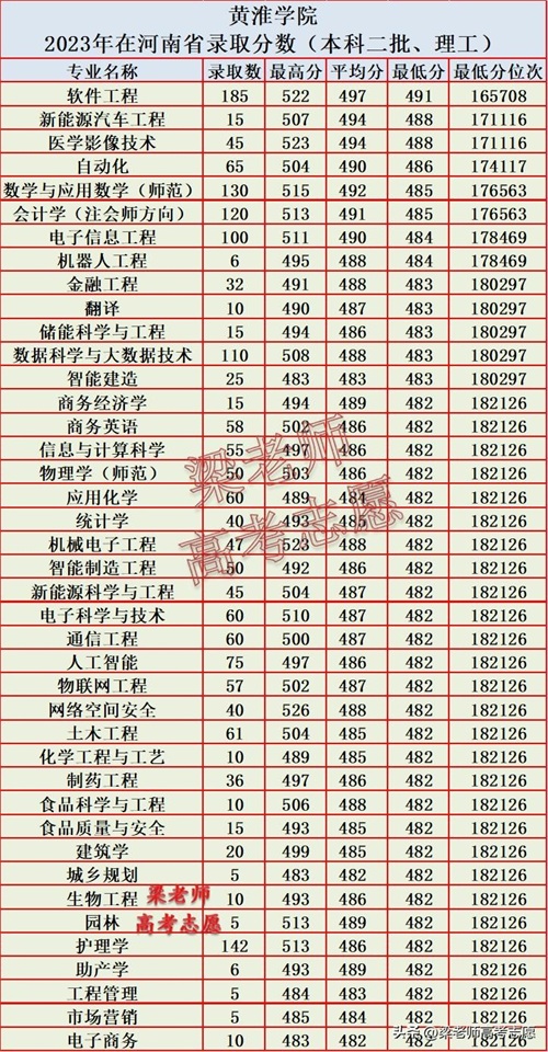 黄淮学院2023年分省分专业录取分数及2024年报考建议