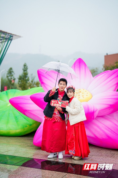 来自邵阳的新人张贵成和赵芳明夫妇,两人去年领证,但是一直没有举办婚礼,当得知“我的婚礼在韶山”活动的消息之后,两人毫不犹豫就报了名。特别值得一提的是,两人也是零彩礼的坚定践行者,赵芳明深知老公创业不易,没有向老公提任何要求。她表示,只要心中有爱,还有毛主席的见证,就是最好的彩礼。