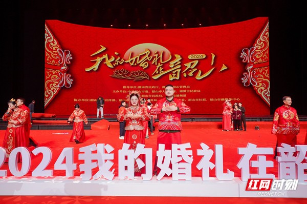红网时刻新闻11月24日讯(通讯员 贺星)11月24日,“我的婚礼在韶山—2024红色集体婚礼”在韶山成功举办。百位新人在这里共同开启他们的幸福婚姻生活,让红色浪漫尽情绽放在伟人故里。