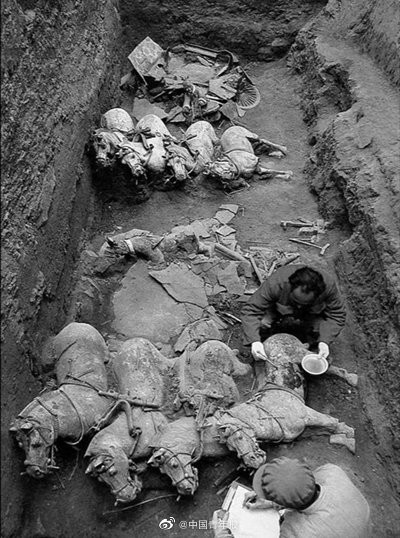 文化地理【沉默军团背后的故事】在位于陕西省西安市临潼区的秦始皇陵以东约1500米的位置,有一座名叫西杨村的小村庄。1974年3月末,一位生产队长带着几个农民来到这座村子南面的小树林旁打井。当他们挖到3米多深的地方时,竟然发现了残破的“瓦人”身体。继续向下,又挖出了残破的“瓦人”头、铜弩机、铜箭头、铺地砖。打井的农民不知道他们挖出的东西是什么,价值几何,于是便将其随意地扔在了地上。村里的人知道后也纷纷议论,有的人说是挖到了“瓦神爷的庙”,甚至还在井口旁点起了香火。打井工作也就此停了下来。 20多天之后,4月24日,当时的公社水利干部房树民前往打井地并在查看过现场后认为这些陶片可能是文物,于是他立即向当时的临潼县文化馆汇报了情况。县文化馆的丁耀祖听闻后,立即与副馆长王进成、文物干部赵康民一同赶赴西杨村。在查看了井口迹象和地上的陶片之后,他们初步判断这些陶片可能属于大型陶俑。第二天,赵康民再次来到西杨村,并在几位村民的帮助下,用3辆人力架子车把井下以及散落在地上的陶片拉回了县文化馆。 1974年6月,赵康民拼凑修复出了两件大小与真人相仿的陶俑,而秦始皇陵发现大型陶俑的消息也通过媒体传播了出去。中央对此当即批示:“迅速采取措施,妥善保护好这一重点文物。”7月15日,由陕西省文化局组织的秦俑考古队来到发掘现场,通过挖掘和钻探,最终发现一座总面积达14260平方米的大型陪葬坑,坑内有陶俑、陶马约6000件。被誉为“世界第八大奇迹”的秦始皇兵马俑从此揭开了其神秘的面纱。