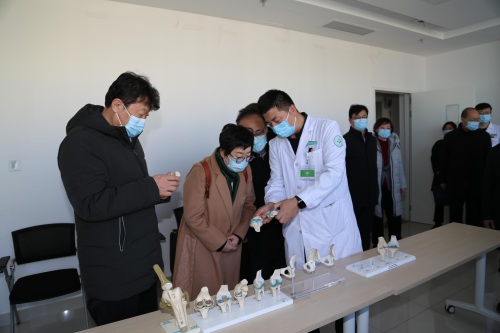 医院党委书记贾春梅等领导班子陪同阿古拉校长一行参观了外科学教研室(关节外科教研组)示教室、新建的智慧教室后,开展座谈。