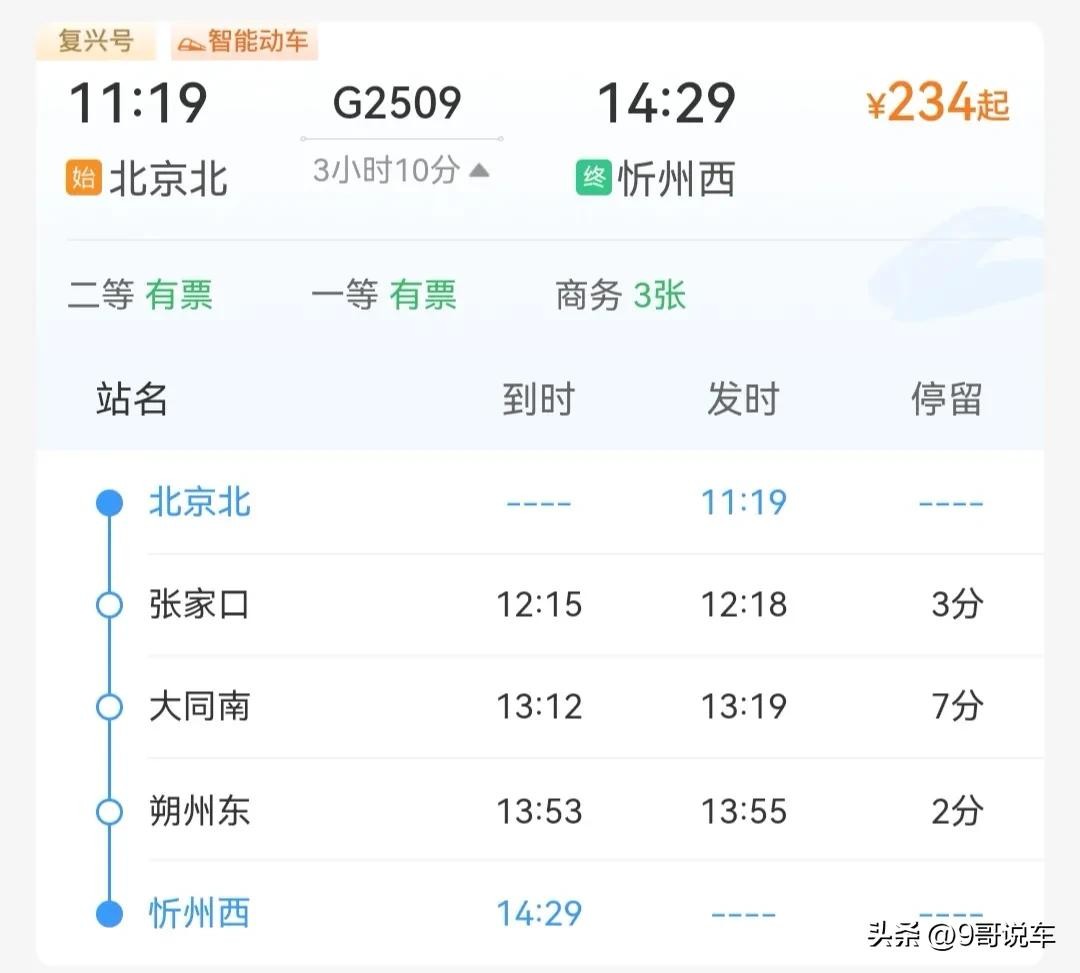 自1月14日起,忻州西、太原南共新增了2对始发终到北京北方向高速动车。其中忻州西-北京北开行G2510/09次高速动车1对,太原南—北京北开行G2512/3次高速动车1对。