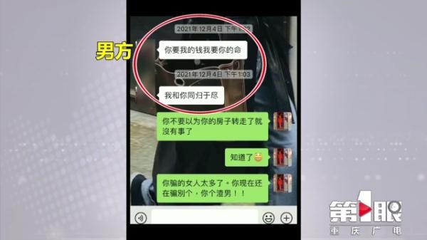 李女士说,两人去年分手之后,她多次要求对方还钱,但对方不仅不还,还在微信里发出了威胁。李女士提供的微信聊天记录显示,对方说道:“你要我的钱,我就要你的命”“我和你同归于尽”。
