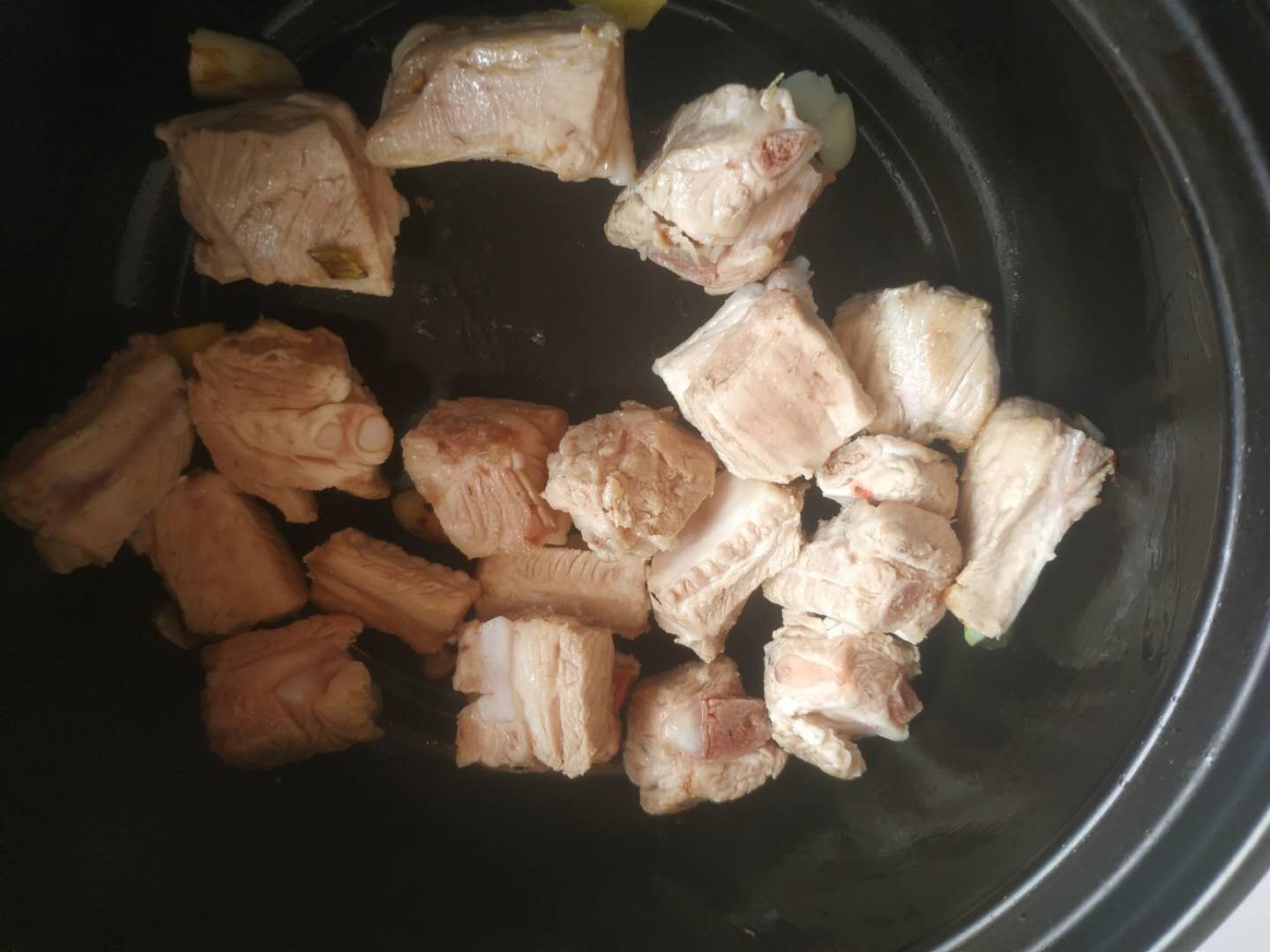 做法:1,猪小排骨切成小段,凉水下锅焯水,放jiang2片,料酒一勺。去掉上面一层血沫,再用温水冲洗一下备用。
