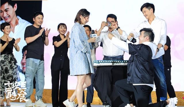 随后,梁超起身亲吻了未婚妻的脸颊,雷佳音、热依扎、周一围等主演们为这对幸福的情侣鼓掌叫好。