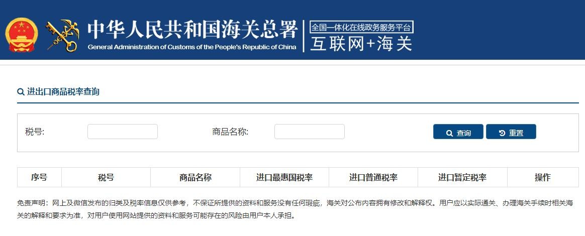 该网站提供中国进出口贸易和海关数据的信息,涵盖关税查询服务。在官网首页点击【专题专栏】-【进出口商品税率查询】即可跳转至税率查询界面。用户只需输入商品名称、税号等关键信息,便能快速获取相应的关税税率及税则分类。