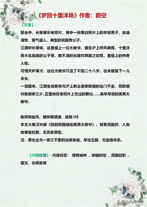 《梦回十里洋场》作者:蔚空《春日迟》作者:蔚空《野玫瑰》作者:蔚空《雁南飞》作者:蔚空《情深似浅》作者:蔚空《四十二公里》作者:蔚空《逐光者》作者:蔚空《等雨停》作者:蔚空《融雪》作者:蔚空《南风已至》作者:蔚空《小晴天》作者:蔚空