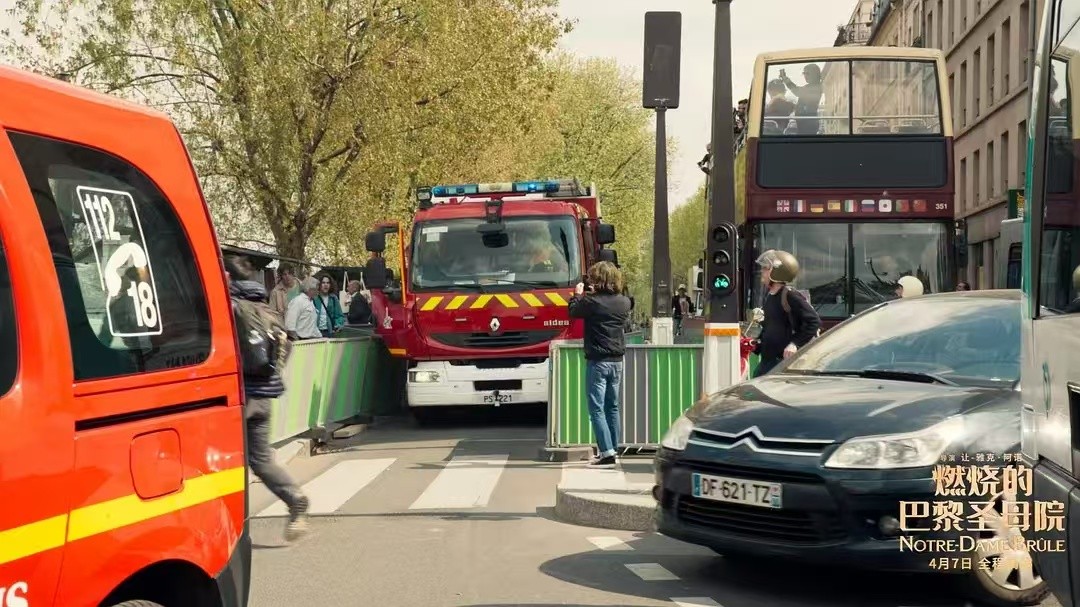 电影《燃烧的巴黎圣母院》中,消防队在途中不断遇到堵车问题。资料图片