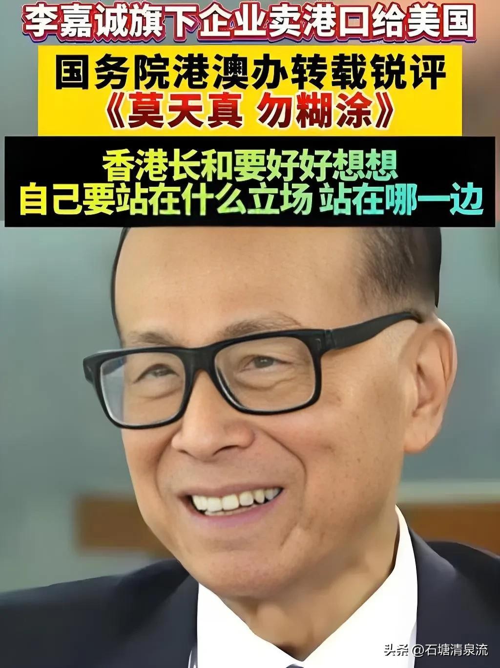 这几天,香港首富李嘉诚与他旗下的长和集团被舆论推上了风口浪尖,有力挺跟洗白的,但更多的是批评及唾弃。起因在于李嘉诚把其手中23国家的43个码头打包卖给了美国犹太财团贝莱德,其中巴拿马运河首尾两个港口尤为重要,只因事关中国在世界的海运布局与“一带一路”的发展等。事态发酵后,香港大公报火力全开的批评了李嘉诚,国务院港澳办更是连续转载了大公报的锐评,很是说明问题,就连香港前特首粱振英和现任行政长官李家超也先后就此事发声,含蓄规劝及婉转批评某人的做法。那么在民族大义和个人利益的选择上,该何去何从?