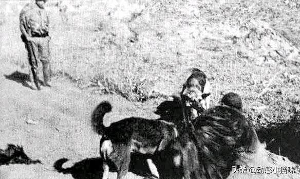 在远处还有一个日军正在看着这一幕,当时日军饲养了很多狼狗,主要用来追踪,有的时候日军也会用军犬撕咬老百姓。