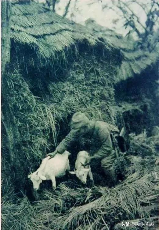 10、在一个草垛里面,一个日军从里面抓了两只羊出来,这是日军进村扫荡的时候,日军正在抢夺老百姓家的物资。