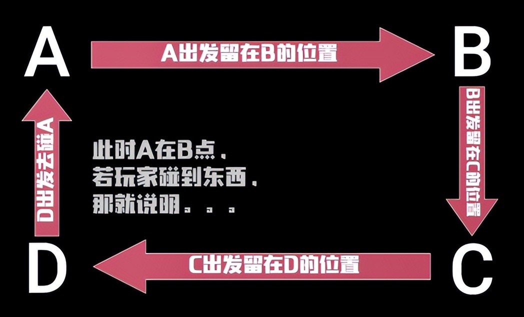 具体来说就是,有一个人率先从自己所在的墙角(假设为A)出发,沿着墙走到另一个墙角(假设为B),然后轻拍一下站在B墙角的人,这时B再向C出发。以此类推,那么当D走向A的时候,A处应该是没有人的。问题就出在这里。
