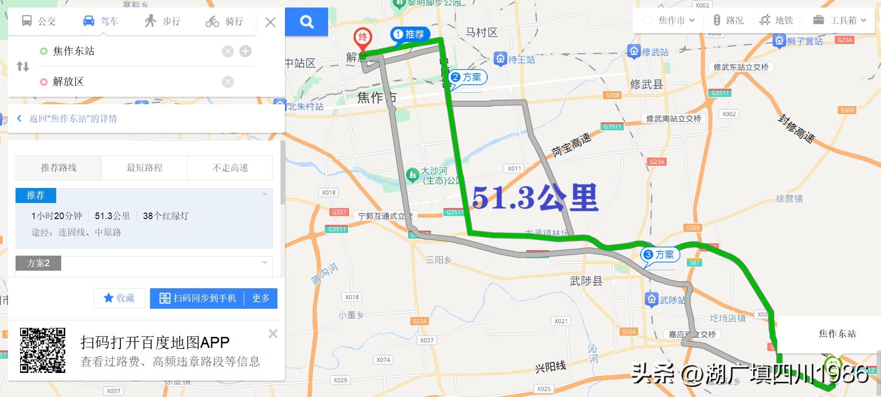 从前面介绍可以看出,这个焦作东站是在武陟县,距离焦作市区还是有一定距离的,这个距离有多远?答案是51.3公里。