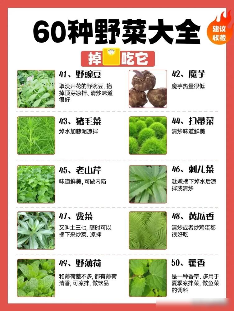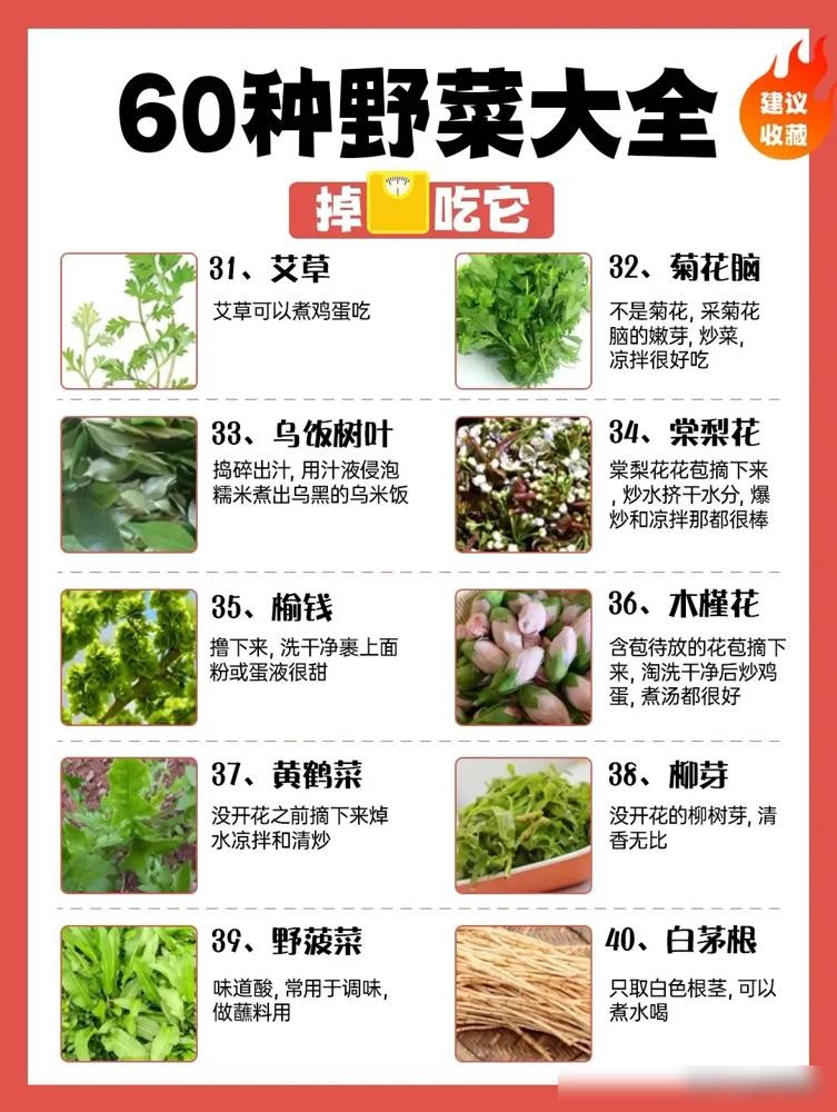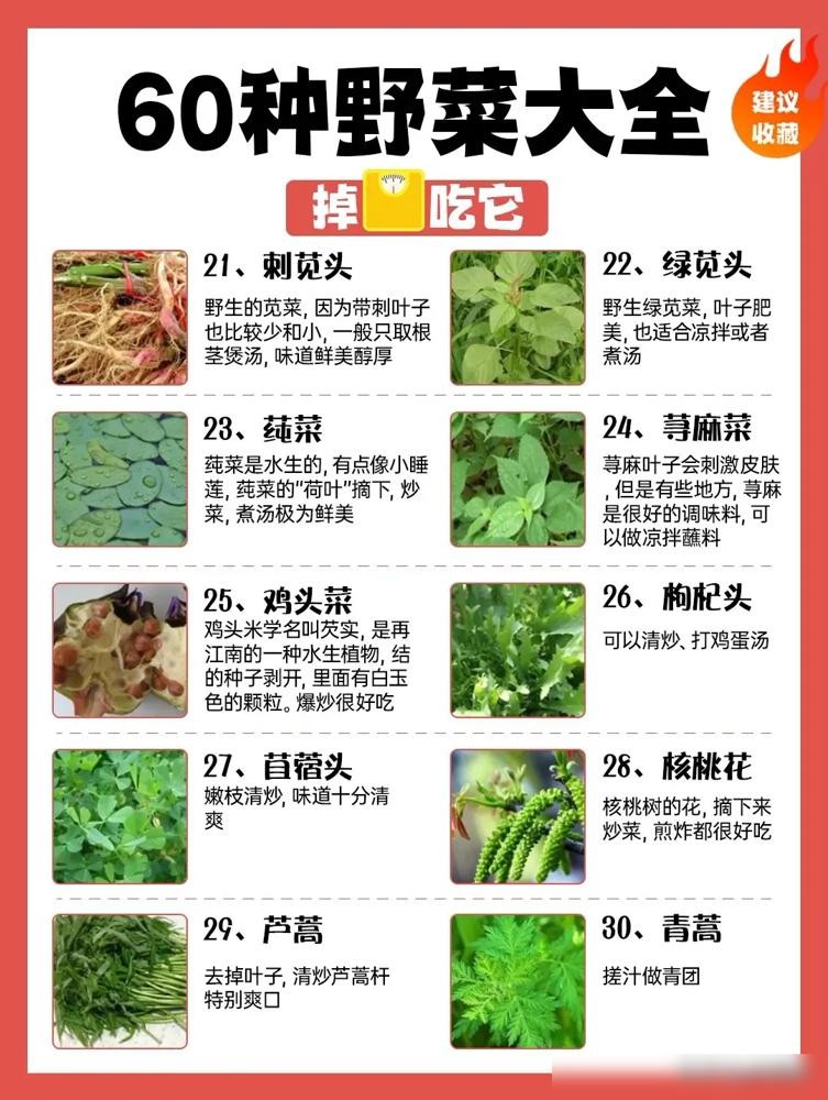 又到了吃野菜的季节,60种野菜大全分享给大家,看看你吃过几种
