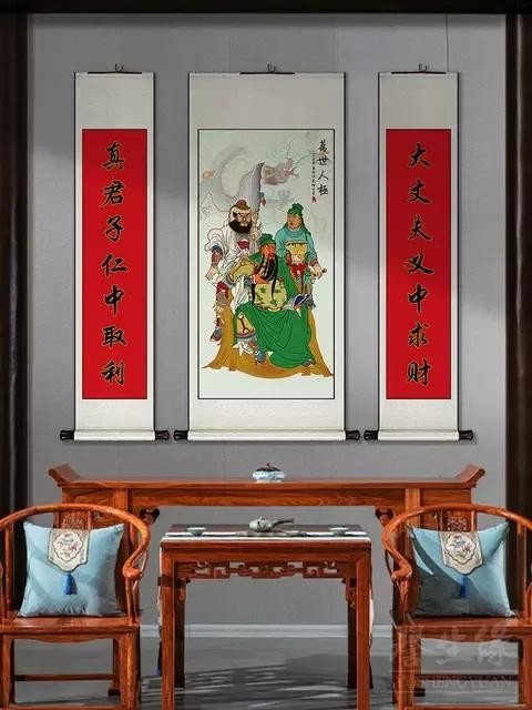 中堂画的悬挂位置和方式也有一定的讲究。一般来说,中堂画应该挂在厅堂的正中央,高度应该与人的视线相平,这样才能够达到最佳的观赏效果。同时,中堂画的悬挂方式也应该与厅堂的整体布局和装饰风格相协调,以体现主人的品味和个性。