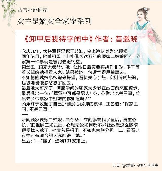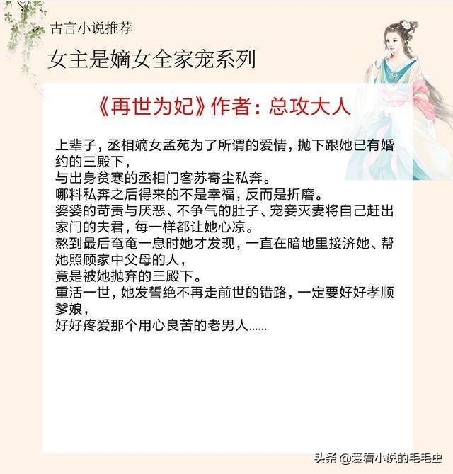 大家好,我是毛毛虫,今天推荐5本女主是嫡女全家宠的古言,《造作时光》女主从小被娇宠长大