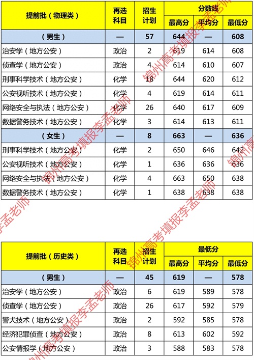 中国刑事警察学院2024在辽宁各专业【最低分、最高分】