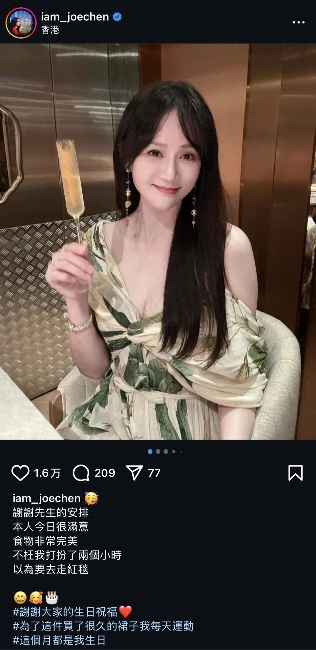 据悉,陈乔恩与小自己9岁的马来西亚富二代艺术家Alan结婚3年,十分恩爱,2人也常到世界各地旅游,这次生日也是在香港庆祝。