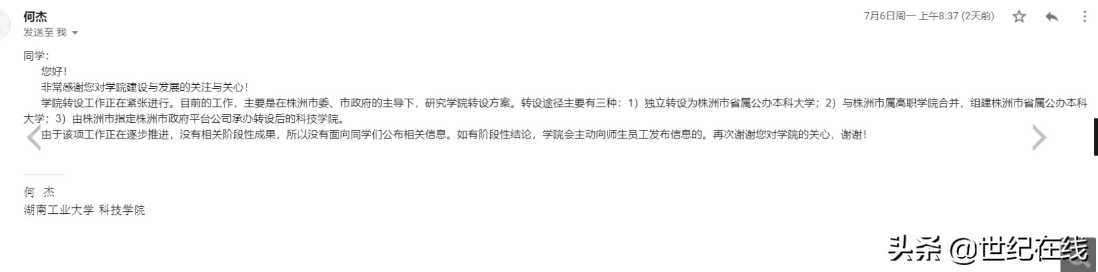 近日在百度贴吧湖南工业大学吧关于湖南工业大学科技学院转设的方案,目前有三种方案: