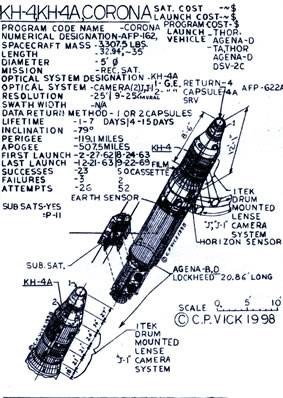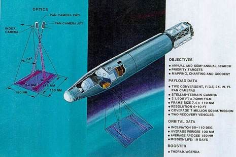 这里有必要提及以下,最早的"锁眼"侦查卫星,既KH-1到KH-3"日冕"系列都是完全的一次性的侦查卫星,在有限的天数后便成为废物。以现在最新型的锁眼一颗造价高达25亿美金来看,当年使用一次性侦查卫星可谓是疯狂之举,冷战就是这样不折不扣的烧钱游戏。