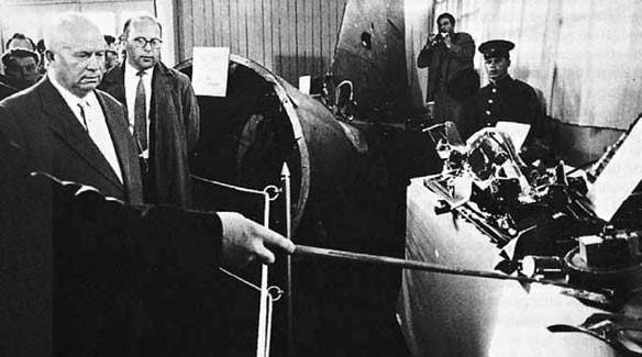 ▲赫鲁晓夫残参观被击落的U-2高空侦察机残骸,美国方面不得不停止相关活动