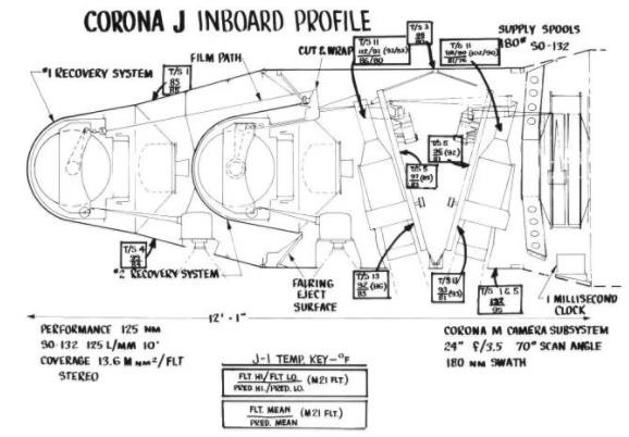 ▲KH-4间谍卫星的草图,标题上的CORONA正是"科罗娜"项目