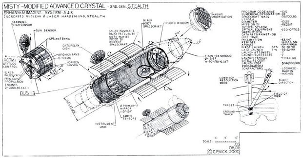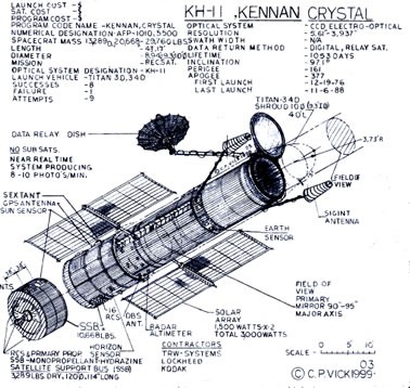 当然你认为"锁眼"的技术成长就仅限于此了吗?那就大错特错了,还是在《星球大战》(1977年)放映之前,1976年NRO正式开发出了KH-11"晶体"军用间谍卫星,这完全可以被描述为一款划时代的科技成就,因为此刻漂浮在我们头顶的间谍卫星中还有4枚就是KH-11,其中有一部分已经工作了20年以上,依然忠实的为美国情报机构扮演着"上帝之眼"的角色。