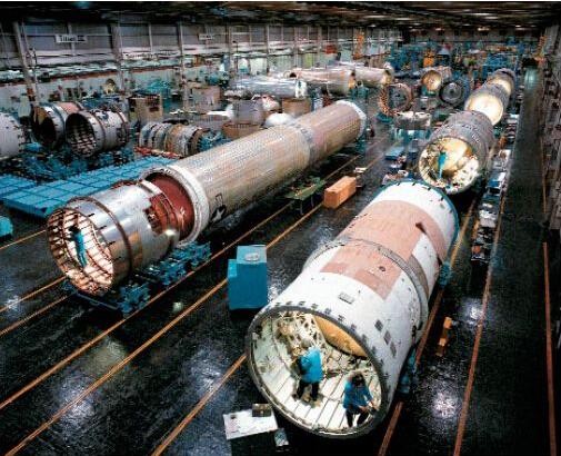▲洛克希德的KH-9组装车间,最大特征就是前部的4个回收装置