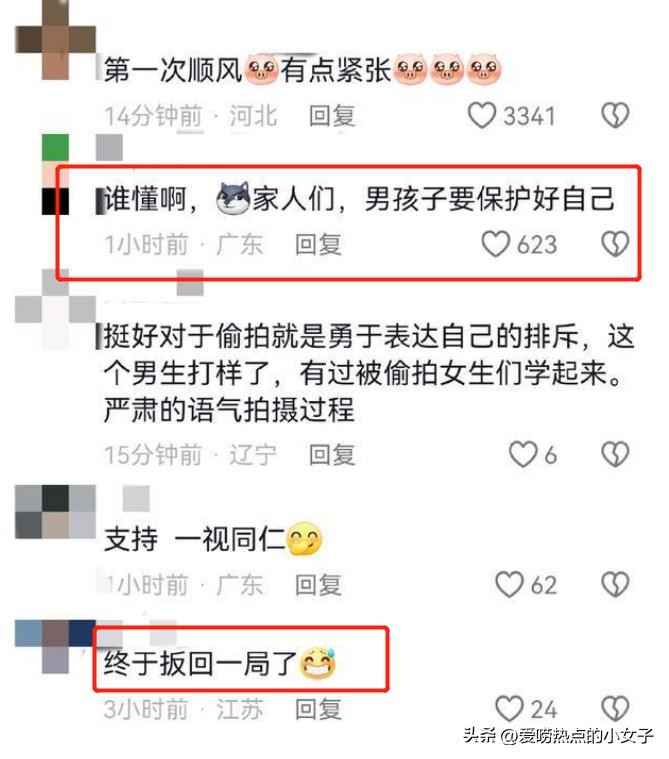 有网友调侃道:“谁懂啊,男孩子在外面要学会保护自己!”