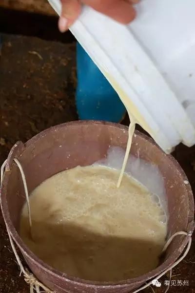 询问方知,这头奶牛昨天刚生了牛宝宝。挤出来的“牛初乳”,要给牛宝宝喝。否则牛宝宝要生病的!