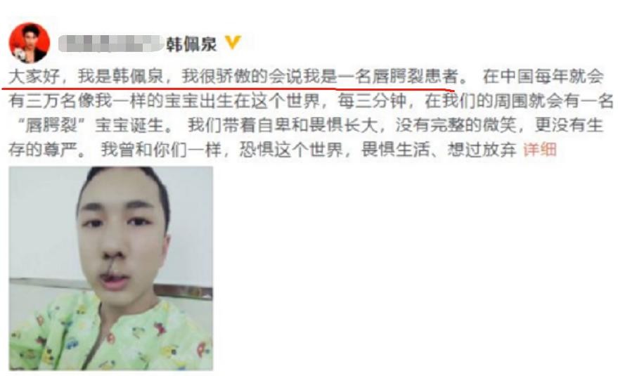 此前,他在直播中也曾自嘲:“从嘴唇一直裂到嗓子眼,一出生就吓倒了所有人。”