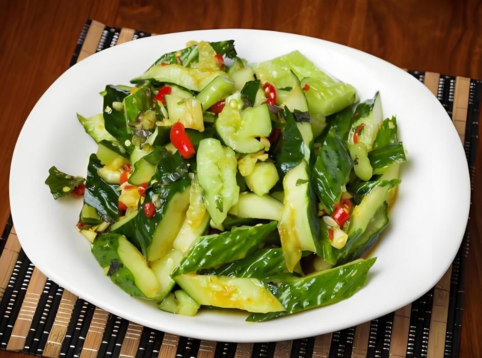 凉拌黄瓜口感清脆,酸甜爽口,是夏季餐桌上的常见凉菜。黄瓜洗净拍碎或者切成段,加入蒜、醋、糖、盐、生抽等调料拌匀。还可以根据个人喜好加入辣椒油等调料。这道菜制作简单,清凉可口,非常适合夏天食用。