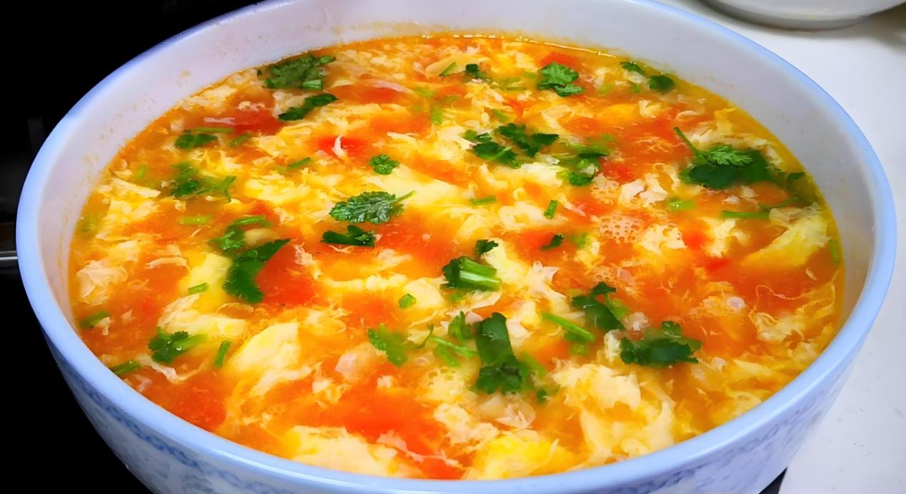番茄鸡蛋汤做法简单,酸甜可口。番茄切块,鸡蛋打散。先炒番茄,炒出汁后加入适量水,水开后倒入鸡蛋液搅拌均匀。这是一道非常受欢迎的汤品,无论是早餐还是晚餐都很合适。