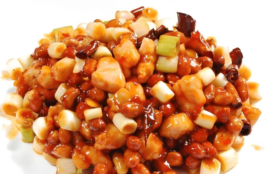 宫保鸡丁是闻名中外的特色传统名菜。这道菜红而不辣、辣而不猛、香辣味浓。鸡肉切成小丁,炒至肉质滑脆。花生米是这道菜的点睛之笔,增加了香脆的口感。配菜有黄瓜、胡萝卜等,色彩丰富。宫保鸡丁独特的风味源于其特殊的调味,甜面酱、辣椒酱等调料的巧妙搭配,让这道菜的味道层次分明,无论是大人还是小孩都难以抗拒它的魅力。