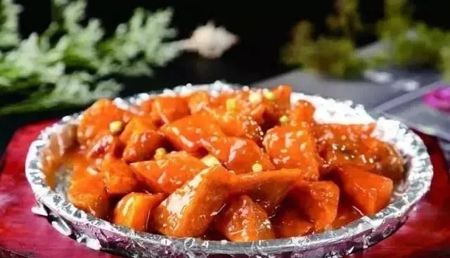 土法:红薯一般很少用来做菜,在烹调时将其切成块,油炸后搭配牛肉末一起烧制,土土的原料口味也可以更精彩。