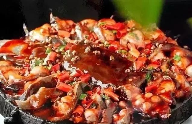 这道菜人气超高,每桌必点,将鲶鱼切成0.5厘米的薄片,用特制鲶鱼酱码味再焗制,铺满一铁板,且鱼肉鲜嫩,口感酱香微甜,咸、甜之间又融合了葱蒜的香味,口味富有层次感,鲶鱼焗后会更加鲜美。