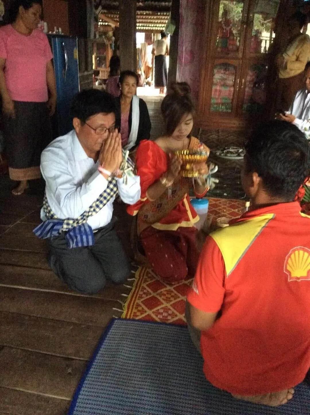 但心沉下来后就会发现,老挝人民虽然不富裕但非常好客,对中国人比较友好,他们非常纯朴,非常热情,在老挝工作的那些年里。与他们相处熟了不断的有很多热情的朋友问我有没有成家,得知我已离异就要为我介绍对象,刚开始我以为是他们的习俗在开玩笑,而我也并没有打算要在老挝成家,所以他们要介绍女孩子给我基本都被我拒绝了。直到2014年的某天,一个偶然的机会发现一个女孩子非常漂亮,这个女孩真的让我心动,有种想追她的冲动,后经多方打听才找到这个女孩子。我们先相互介绍认识,从这,才开始接触,女孩那年十七岁,对我印象也很好,由于年龄差异(那年我四十七),初开始女孩怕家里不同意,直到有一天女孩约我一起去她家里,我明白了她家里人是想要见见我本人。那天我的心一直忐忑不安,生怕那里做得不好失去这次机会,好在女孩在进门之前把一切当地风俗礼节都一一告诉我,到家见的第一个家长就是她妈妈,女孩父亲去世得早家里妈妈当家,还有几个姐姐,一家人把我上下左右打量个遍,当时我很难受,站也不是坐也不是,打量完了也不说话,我丝毫看不出她们的面部表情是同意或反对。也没有任何人告诉我,直到下午我要走了女孩送我时在路上告诉我她妈妈同意了!一听这话我高兴极了,是个大大的惊喜!从此我们就开始经常往来,我把她家当着我家,隔三差五就往她家跑,她家的家教比较严,没有结婚不允许女孩在外过夜,出来玩晚上九点之前必须要回家。第二年,也就是女孩十八岁那年,我们结婚了!