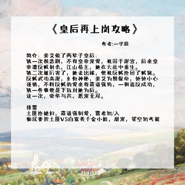 4、《皇后再上岗攻略》作者:一字眉