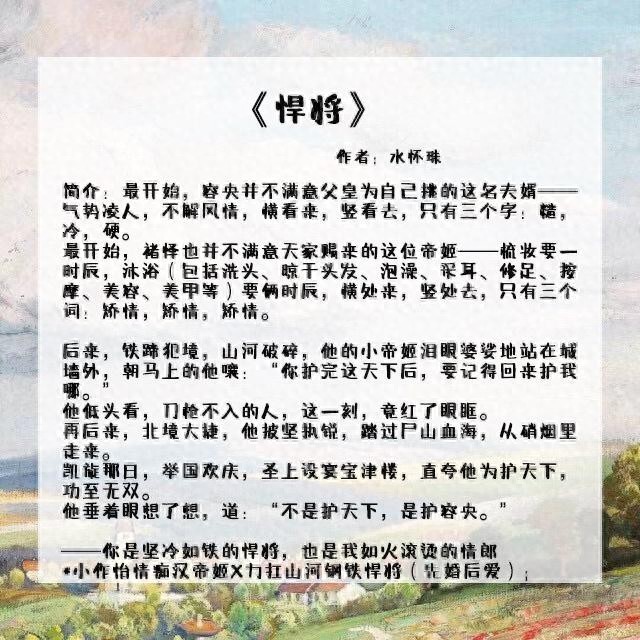 1、《悍将》作者:水怀珠