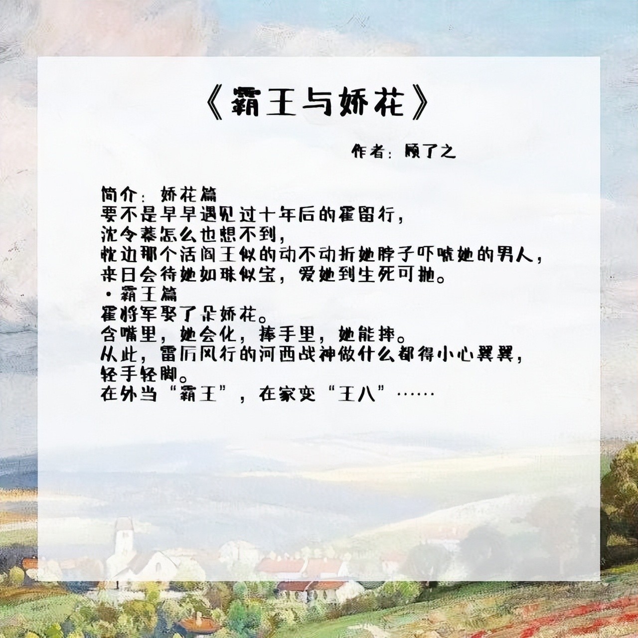 3、《霸王与娇花》作者:顾了之