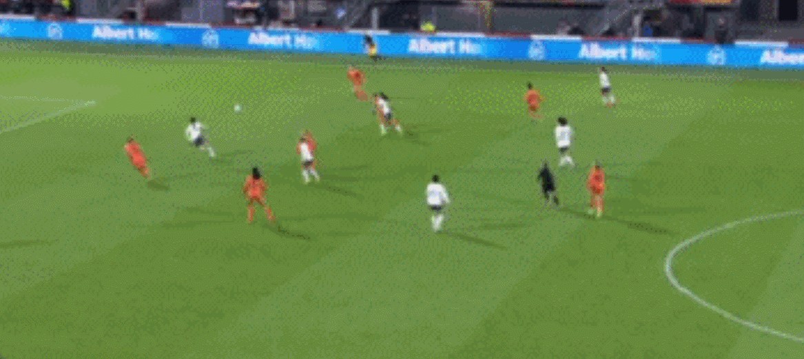 第66分钟,里帕突入禁区后横敲门前,卡普泰因轻松推射破门,帮助荷兰女足1-1扳平比分。