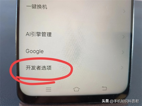 进入之后,我们可以往上翻,到达底部之后你会看到一个开发者选项,打开它(如上图所示)